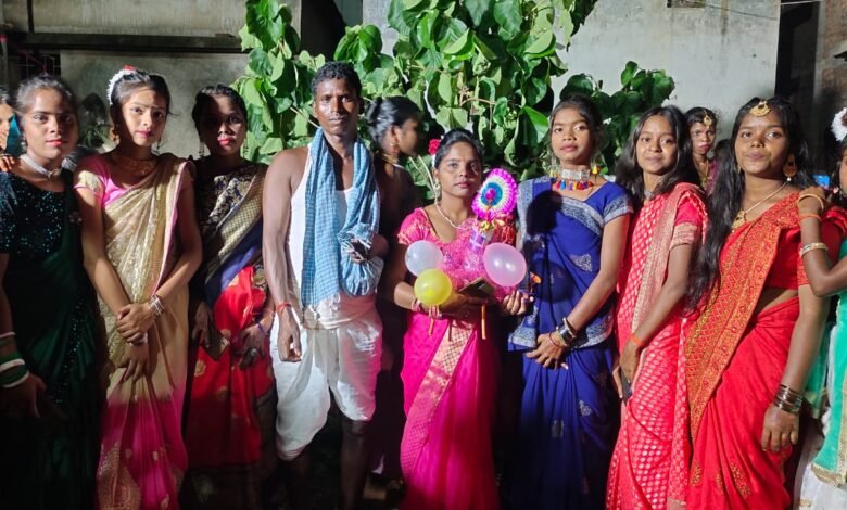 हेसला अखड़ा और चुम्बा में धूमधाम से मना करमा पर्व चुम्बा में व्रतियों द्वारा माथे पर थाली रखकर की करम डाल की पूजा