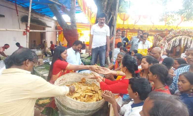 पंचमंदिर हजारीबाग के भंडारे में शामिल हुई विधायक अंबा प्रसाद, पंडाल में श्रद्धालुओं को किया प्रसाद का वितरण