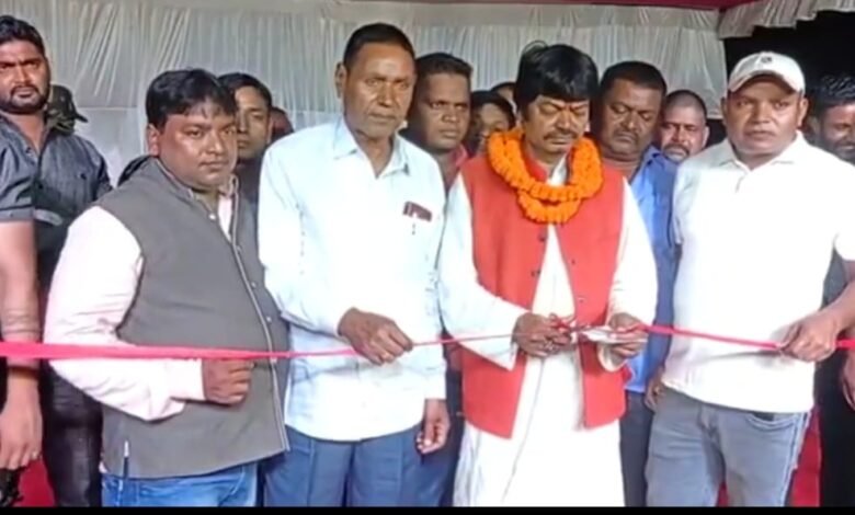लबगा दुर्गा पूजा पंडाल में पहुंचे पूर्व कृषि मंत्री योगेंद्र साव,मुख्य अतिथि पूर्व कृषि मंत्री योगेन्द्र साव ने शिरकत करते हुए कार्यक्रम में फीता काटकर इसका शुभारंभ किया