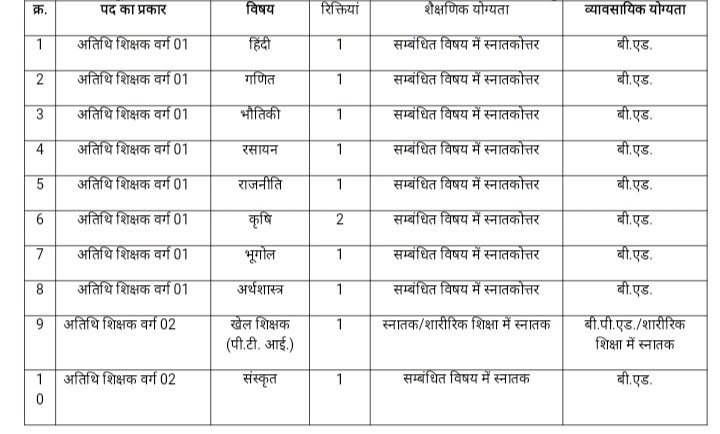 6 उक्त पदों पर नियमित पदस्थ ना होने की स्थिति में अतिथि शिक्षकों की सेवाएं स्वतः ही समाप्त हो जावेगी।