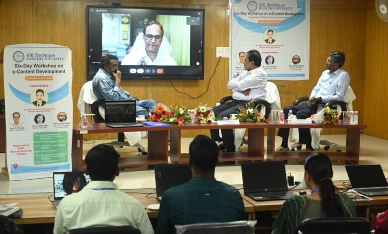कार्यशाला के उद्घाटन सत्र का संचालन डॉ. आनंद ठाकुर ने किया , स्‍वागत भाषण डॉ. बी.के. सिन्‍हा ने देते हुये इ-कंटेंट के महत्‍व पर प्रकाश डाला और बताया कि किस प्रकार यह रांची विश्‍वविद्यालय को नयीं ऊंचाइयों पर ले जायेगा। उद्घाटन सत्र के समापन पर आभार ज्ञापन डॉ. विनोद कुमार महतो ने किया। इस अवसर पर डॉ. शिप्रा, डॉ. सोनी तिवारी, डॉ. जी.एस. झा, मास कॉम के उपनिदेशक डॉ. विष्‍णु चरण महतो, डॉ नीरज व अन्‍य लोग उपस्थित थे।
