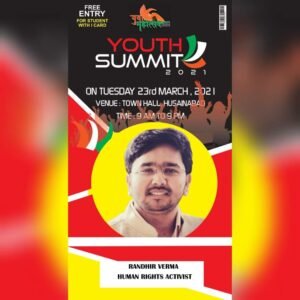 राँची : छात्र जीवन से सामाजिक बदलाव हेतु संघर्षरत ऊर्जावान युवा , एन एच आर सी सी बी राष्ट्रीय अध्यक्ष डॉ रणधीर वर्मा 23 मार्च को हुसैनाबाद में आयोजित होने वाले यूथ समिट में भाग लेंगे ! इस यूथ समिट में देश के कई ऐसे युवाओं को बुलाया जा रहा जिन्होंने कम उम्र में अपने क्षेत्रों में उत्कृष्ट पहचान बनाई है ! लोकसभा टी वी के जाने माने पत्रकार मनोज वर्मा, युवा आई पी एस के विजय शंकर, सबसे कम उम्र की महिला सरपंच जबना चौहान , प्रशिद्ध योग शिक्षिका राफिया नाज, सामाजिक कार्यकर्ता संजय मेहता, आर जे सैंकी ,युवा नेता नगर पंचायत अध्यक्ष शशि कुमार ,कैरियर कोच विकास कुमार ,प्रशिद्ध यूट्यूबर निशांत सोनी जैसे युवा शख्शियत इस यूथ समिट में भाग लेंगे और अपनी संघर्ष की कहानी लोगो तक पहुचायेंगे !
