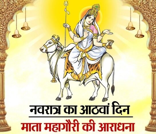 नवरात्र का आठवां दिन (दुर्गाष्टमी): माता महागौरी की आराधना,श्वेते वृषे समारूढ़ा श्वेतांबर धरा शुचि:।महागौरी शुभं दद्यान्महादेव प्रमोददा ॥
