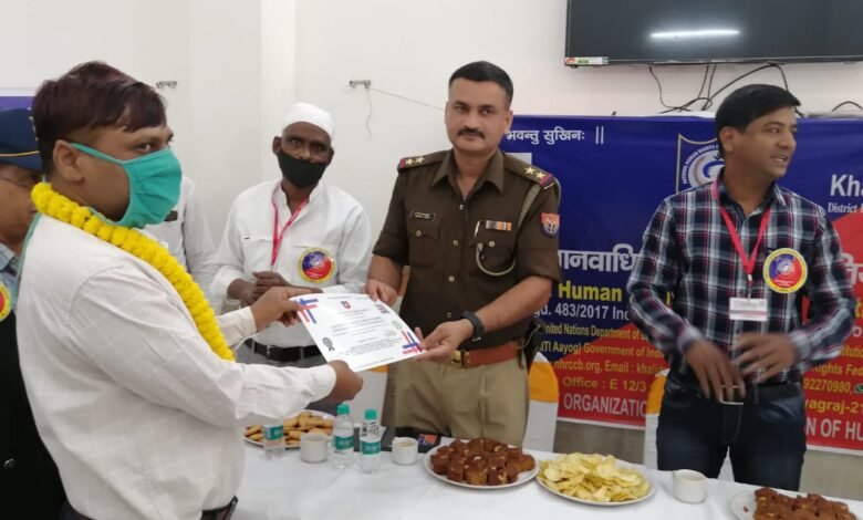 प्रयागराज : राष्ट्रीय मानवाधिकार एवं अपराध नियंत्रण ब्यूरो के स्टेट कार्यकारिणी अध्यक्ष इन्तेखाब अहमद के सौजन्य से कोविड- 19 के योद्धाओं को प्रमाण पत्र देकर सम्मानित किया गया।